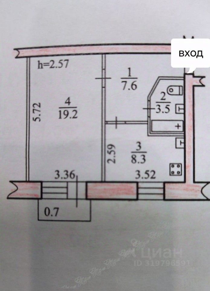 Возможен обмен на двухкомнатную квартиру с доплатой.