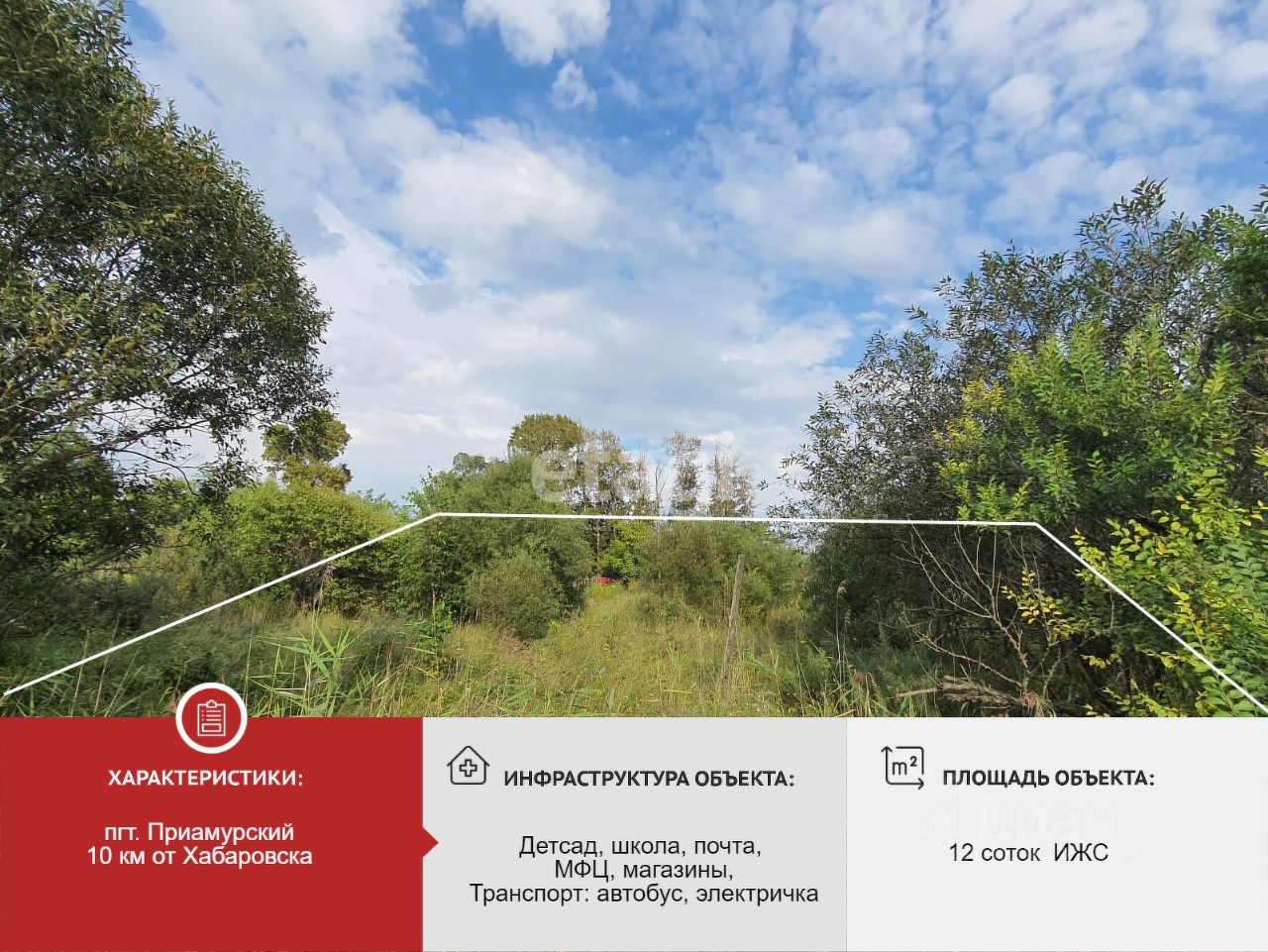 Продается земельный участок общей площадью 12 соток Участок расположен на левом берегу Амура в п. Приамурский близко к центру поселка. Участок в собственности, категория земли — для индивидуального жилищного строительства, сделано межевание. Рядом столбы — ЛЭП, проблем с подключением электроэнергии не возникнет. Участок отлично подойдет для строительства жилого благоустроенного дома. Спокойный жилой район поселка. Один собственник, документы готовы. Звоните. Договоримся о времени просмотра.