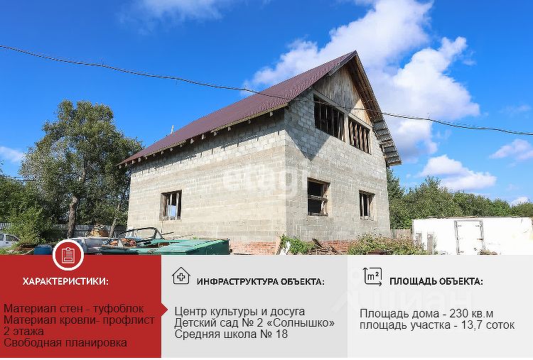 Продается просторный дом в поселке Приамурском! Дом находится на кадастре как незавершенное строительство, общая площадь 230 кв.м. Все необходимые коммуникации подведены: имеется шамбо, скважина, а также электричество, что позволяет вам сразу приступить к дальнейшим работам. Стены выполнены из качественного туфоблока, что обеспечивает отличную тепло- и звукоизоляцию. На участке также имеется утепленный сарай. Просторный двор и частично разработанная территория создают отличные условия для ведения хозяйства или создания уютного сада. В конце участка расположены деревья, которые дарят тишину и покой, позволяя наслаждаться природой и свежим воздухом. Так же примыкает еще один участок 11 соток, на котором имеется большой промышленный гараж, 70 кв.м. и жилое помещение. Звоните, чтобы узнать подробности и записаться на просмотр!